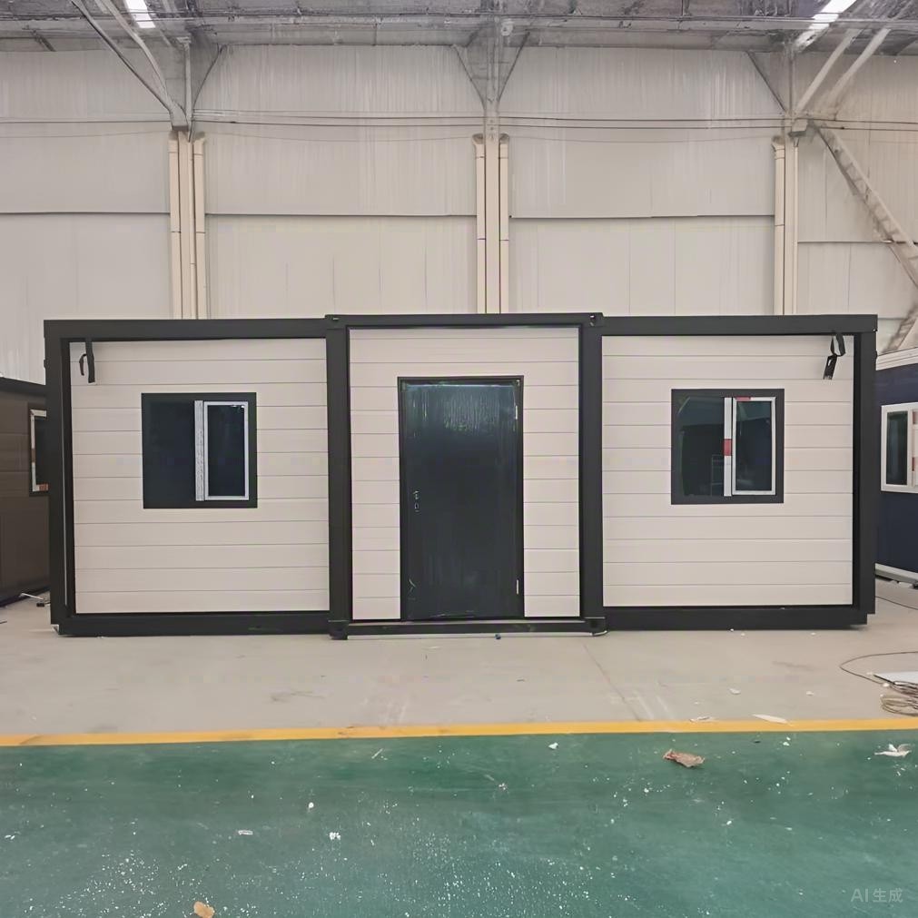 Classic white exterior with a robust dark frame. Equipped with standard windows and a solid security door for privacy. A practical choice fully compliant with Australian Standards.
